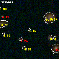 Object #436 x,y = (3409, 2733) RA, Dec = (01:37:21.456, -8:27:07.56) = (24.33940, -8.45210) BPZ = 1.161 [0.573--2.559] type = 10.10 (SB3_B10 - SB11_A_0_l) chisq2 = 0.05 ODDS = 0.26 z_cluster = 0.566