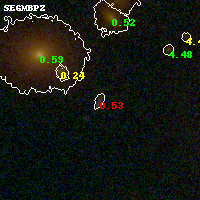 Object #577 x,y = (2302, 2478) RA, Dec = (01:37:25.920, -8:27:23.04) = (24.35800, -8.45640) BPZ = 0.531 [0.520--2.659] type = 10.80 (SB11_A_0_l - SB3_B10) chisq2 = 1.72 ODDS = 0.25 z_cluster = 0.566