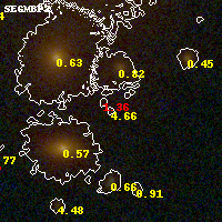 Object #688 x,y = (2542, 2280) RA, Dec = (01:37:24.960, -8:27:34.92) = (24.35400, -8.45970) BPZ = 4.662 [0.445--5.222] type = 10.30 (SB3_B10 - SB11_A_0_l) chisq2 = 0.61 ODDS = 0.44 z_cluster = 0.566