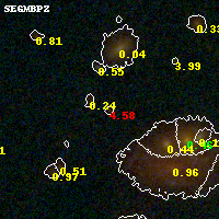 Object #441 x,y = (2307, 2730) RA, Dec = (01:37:25.896, -8:27:07.92) = (24.35790, -8.45220) BPZ = 4.581 [0.178--5.610] type = 9.00 (SB2_B10) chisq2 = 1.06 ODDS = 0.24 z_cluster = 0.566