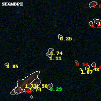 Object #81 x,y = (2087, 3370) RA, Dec = (01:37:26.784, -8:26:29.40) = (24.36160, -8.44150) BPZ = 1.744 [1.265--2.412] type = 9.30 (SB2_B10 - SB3_B10) chisq2 = 0.66 ODDS = 0.37 z_cluster = 0.566