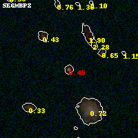 Object #828 x,y = (1783, 2004) RA, Dec = (01:37:28.032, -8:27:51.48) = (24.36680, -8.46430) BPZ = 0.448 [0.029--0.540] type = 8.10 (SB1_B10 - SB2_B10) chisq2 = 2.14 ODDS = 0.68 z_cluster = 0.566