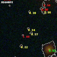 Object #904 x,y = (2068, 1884) RA, Dec = (01:37:26.856, -8:27:58.68) = (24.36190, -8.46630) BPZ = 0.339 [0.091--3.941] type = 8.00 (SB1_B10) chisq2 = 0.39 ODDS = 0.14 z_cluster = 0.566