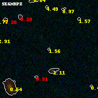 Object #981 x,y = (3340, 1741) RA, Dec = (01:37:21.720, -8:28:07.32) = (24.34050, -8.46870) BPZ = 1.557 [0.630--3.021] type = 10.80 (SB11_A_0_l - SB3_B10) chisq2 = 0.27 ODDS = 0.13 z_cluster = 0.566