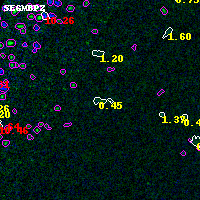 Object #1011 x,y = (1365, 3910) RA, Dec = (01:37:29.712, -8:25:57.00) = (24.37380, -8.43250) BPZ = 0.448 [0.133--3.186] type = 9.00 (SB2_B10) chisq2 = 0.01 ODDS = 0.13 z_cluster = 0.566