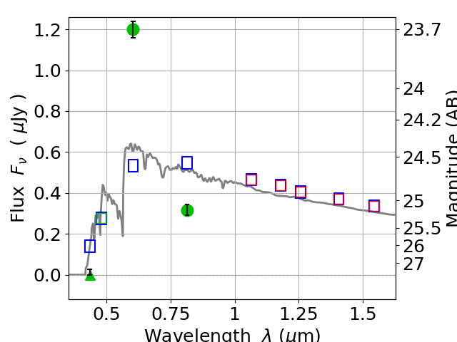 Best viewed in a wide browser window (1200 pixels or more). Download SED & P(z) plots to view larger versions.