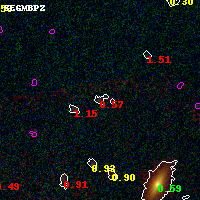 Object #1102 x,y = (3233, 3842) RA, Dec = (01:37:22.152, -8:26:00.96) = (24.34230, -8.43360) BPZ = 0.567 [0.128--3.047] type = 10.70 (SB11_A_0_l - SB3_B10) chisq2 = 6.09 ODDS = 0.22 z_cluster = 0.566