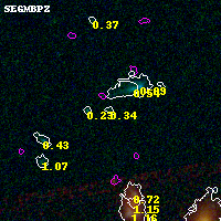 Object #1115 x,y = (2737, 3835) RA, Dec = (01:37:24.168, -8:26:01.32) = (24.35070, -8.43370) BPZ = 0.339 [0.173--3.595] type = 9.80 (SB3_B10 - SB2_B10) chisq2 = 0.97 ODDS = 0.06 z_cluster = 0.566