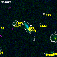 Object #1189 x,y = (2022, 3819) RA, Dec = (01:37:27.048, -8:26:02.40) = (24.36270, -8.43400) BPZ = 0.484 [0.138--2.498] type = 10.30 (SB3_B10 - SB11_A_0_l) chisq2 = 0.27 ODDS = 0.23 z_cluster = 0.566