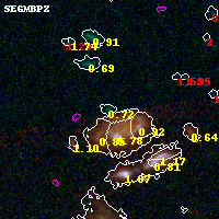 Object #1372 x,y = (2121, 3669) RA, Dec = (01:37:26.640, -8:26:11.40) = (24.36100, -8.43650) BPZ = 0.725 [0.587--1.534] type = 7.30 (Scd_B10 - SB1_B10) chisq2 = 0.00 ODDS = 0.43 z_cluster = 0.566