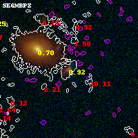 Object #1463 x,y = (3390, 3620) RA, Dec = (01:37:21.528, -8:26:14.28) = (24.33970, -8.43730) BPZ = 0.920 [0.871--1.347] type = 9.80 (SB3_B10 - SB2_B10) chisq2 = 0.65 ODDS = 0.59 z_cluster = 0.566