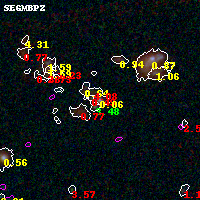 Object #1581 x,y = (1940, 3538) RA, Dec = (01:37:27.384, -8:26:19.32) = (24.36410, -8.43870) BPZ = 0.058 [0.026--2.991] type = 9.30 (SB2_B10 - SB3_B10) chisq2 = 0.03 ODDS = 0.20 z_cluster = 0.566