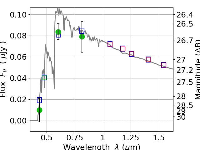 Best viewed in a wide browser window (1200 pixels or more). Download SED & P(z) plots to view larger versions.