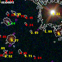 Object #2045 x,y = (3252, 3290) RA, Dec = (01:37:22.080, -8:26:34.08) = (24.34200, -8.44280) BPZ = 2.926 [0.175--3.404] type = 10.90 (SB11_A_0_l - SB3_B10) chisq2 = 0.79 ODDS = 0.32 z_cluster = 0.566