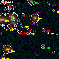 Object #2220 x,y = (3169, 3226) RA, Dec = (01:37:22.416, -8:26:38.04) = (24.34340, -8.44390) BPZ = 0.142 [0.094--2.798] type = 10.40 (SB3_B10 - SB11_A_0_l) chisq2 = 2.68 ODDS = 0.16 z_cluster = 0.566