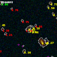 Object #2439 x,y = (3311, 3079) RA, Dec = (01:37:21.840, -8:26:46.68) = (24.34100, -8.44630) BPZ = 0.066 [0.031--1.379] type = 7.50 (SB1_B10 - Scd_B10) chisq2 = 0.53 ODDS = 0.24 z_cluster = 0.566