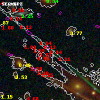 Object #2586 x,y = (2466, 2940) RA, Dec = (01:37:25.248, -8:26:55.32) = (24.35520, -8.44870) BPZ = 0.136 [0.098--0.175] type = 11.00 (SB11_A_0_l) chisq2 = 22.70 ODDS = 0.99 z_cluster = 0.566