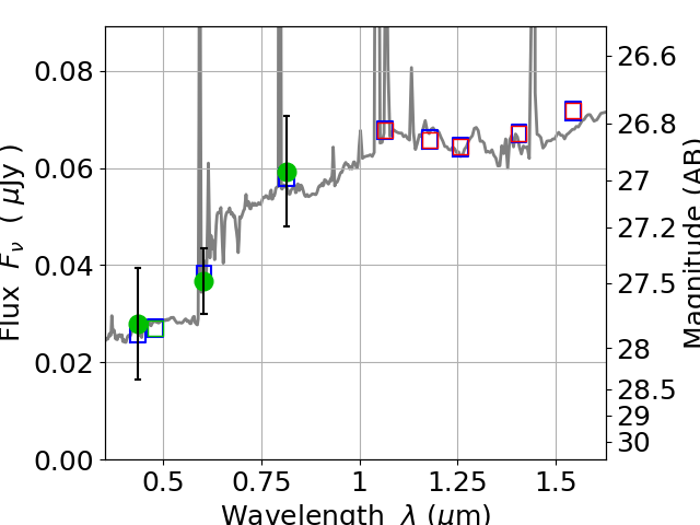 Best viewed in a wide browser window (1200 pixels or more). Download SED & P(z) plots to view larger versions.