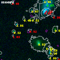 Object #3297 x,y = (4134, 2692) RA, Dec = (01:37:18.504, -8:27:10.08) = (24.32710, -8.45280) BPZ = 0.920 [0.171--10.042] type = 10.00 (SB3_B10) chisq2 = 6.67 ODDS = 0.13 z_cluster = 0.566