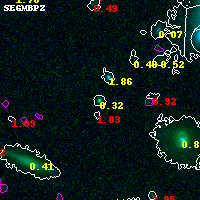 Object #3305 x,y = (4081, 2688) RA, Dec = (01:37:18.720, -8:27:10.44) = (24.32800, -8.45290) BPZ = 0.317 [0.196--0.448] type = 6.00 (Sbc_B10) chisq2 = 0.02 ODDS = 0.50 z_cluster = 0.566