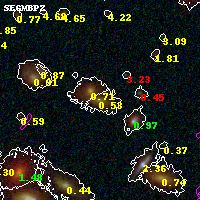 Object #3423 x,y = (2003, 2624) RA, Dec = (01:37:27.120, -8:27:14.04) = (24.36300, -8.45390) BPZ = 0.528 [0.420--0.676] type = 7.50 (SB1_B10 - Scd_B10) chisq2 = 0.45 ODDS = 0.65 z_cluster = 0.566