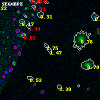 Object #3478 x,y = (4574, 2609) RA, Dec = (01:37:16.728, -8:27:15.12) = (24.31970, -8.45420) BPZ = 1.471 [0.141--3.259] type = 8.90 (SB2_B10 - SB1_B10) chisq2 = 0.00 ODDS = 0.08 z_cluster = 0.566