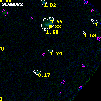 Object #3586 x,y = (4764, 2571) RA, Dec = (01:37:15.960, -8:27:17.28) = (24.31650, -8.45480) BPZ = 1.742 [0.193--3.189] type = 9.30 (SB2_B10 - SB3_B10) chisq2 = 0.00 ODDS = 0.10 z_cluster = 0.566