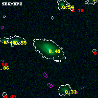 Object #4026 x,y = (3775, 2353) RA, Dec = (01:37:19.968, -8:27:30.60) = (24.33320, -8.45850) BPZ = 0.490 [0.345--0.542] type = 5.40 (ES0_B10 - Sbc_B10) chisq2 = 0.00 ODDS = 0.78 z_cluster = 0.566