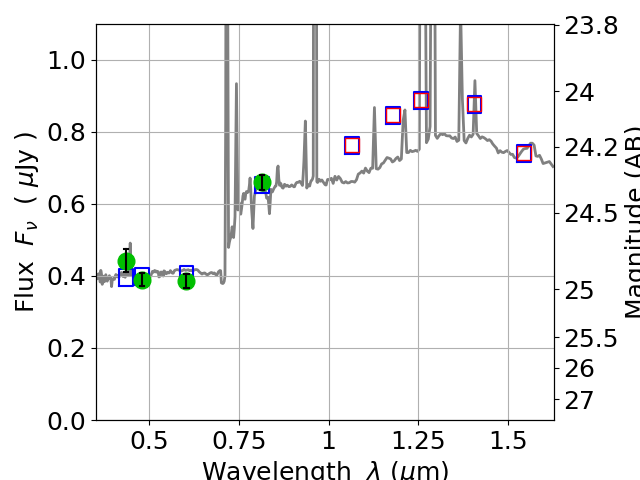 Best viewed in a wide browser window (1200 pixels or more). Download SED & P(z) plots to view larger versions.