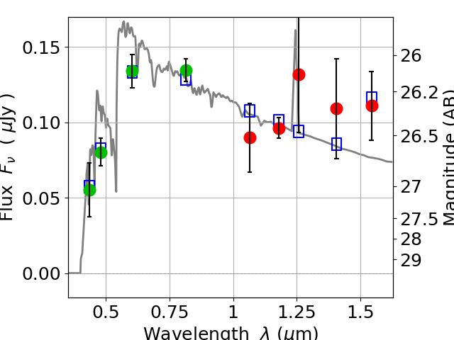 Best viewed in a wide browser window (1200 pixels or more). Download SED & P(z) plots to view larger versions.
