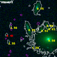 Object #4875 x,y = (1234, 1968) RA, Dec = (01:37:30.240, -8:27:53.64) = (24.37600, -8.46490) BPZ = 0.908 [0.787--1.324] type = 7.30 (Scd_B10 - SB1_B10) chisq2 = 0.05 ODDS = 0.36 z_cluster = 0.566