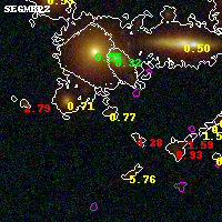 Object #5000 x,y = (2797, 1941) RA, Dec = (01:37:23.904, -8:27:55.08) = (24.34960, -8.46530) BPZ = 0.768 [0.169--2.787] type = 10.60 (SB11_A_0_l - SB3_B10) chisq2 = 0.54 ODDS = 0.24 z_cluster = 0.566