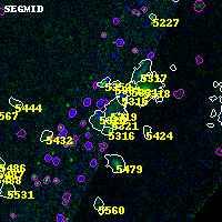 Object #5319 x,y = (4090, 1765) RA, Dec = (01:37:18.696, -8:28:05.52) = (24.32790, -8.46820) BPZ = 0.235 [0.123--3.230] type = 9.00 (SB2_B10) chisq2 = 0.00 ODDS = 0.07 z_cluster = 0.566