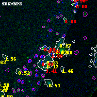 Object #5361 x,y = (4094, 1789) RA, Dec = (01:37:18.672, -8:28:04.08) = (24.32780, -8.46780) BPZ = 0.023 [0.013--2.746] type = 11.00 (SB11_A_0_l) chisq2 = 1032.00 ODDS = 0.26 z_cluster = 0.566