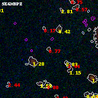 Object #5370 x,y = (2023, 1784) RA, Dec = (01:37:27.048, -8:28:04.44) = (24.36270, -8.46790) BPZ = 0.771 [0.428--4.980] type = 8.70 (SB2_B10 - SB1_B10) chisq2 = 1.65 ODDS = 0.14 z_cluster = 0.566