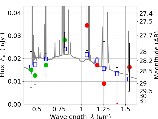Best viewed in a wide browser window (1200 pixels or more). Download SED & P(z) plots to view larger versions.