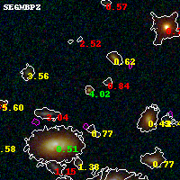 Object #5821 x,y = (2145, 1552) RA, Dec = (01:37:26.544, -8:28:18.48) = (24.36060, -8.47180) BPZ = 4.021 [3.893--4.153] type = 8.60 (SB2_B10 - SB1_B10) chisq2 = 0.44 ODDS = 1.00 z_cluster = 0.566