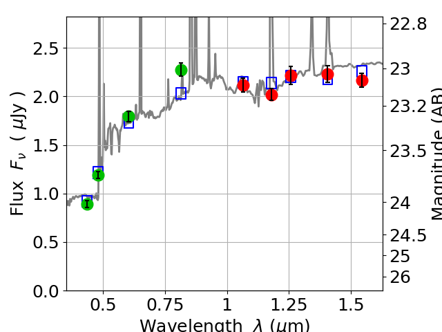 Best viewed in a wide browser window (1200 pixels or more). Download SED & P(z) plots to view larger versions.