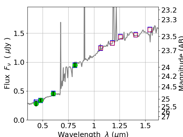 Best viewed in a wide browser window (1200 pixels or more). Download SED & P(z) plots to view larger versions.