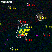 Object #6338 x,y = (2937, 1237) RA, Dec = (01:37:23.352, -8:28:37.20) = (24.34730, -8.47700) BPZ = 0.684 [0.478--2.230] type = 10.80 (SB11_A_0_l - SB3_B10) chisq2 = 0.58 ODDS = 0.20 z_cluster = 0.566