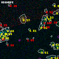 Object #6360 x,y = (3013, 1238) RA, Dec = (01:37:23.040, -8:28:37.20) = (24.34600, -8.47700) BPZ = 3.807 [0.361--4.251] type = 9.20 (SB2_B10 - SB3_B10) chisq2 = 0.26 ODDS = 0.52 z_cluster = 0.566