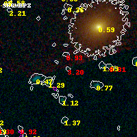 Object #6670 x,y = (2001, 971) RA, Dec = (01:37:27.144, -8:28:53.40) = (24.36310, -8.48150) BPZ = 3.200 [0.234--3.499] type = 11.00 (SB11_A_0_l) chisq2 = 2.49 ODDS = 0.18 z_cluster = 0.566