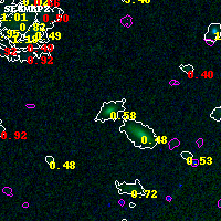 Object #7386 x,y = (3044, 415) RA, Dec = (01:37:22.920, -8:29:26.52) = (24.34550, -8.49070) BPZ = 0.580 [0.485--0.712] type = 5.50 (Sbc_B10 - ES0_B10) chisq2 = 0.00 ODDS = 0.69 z_cluster = 0.566