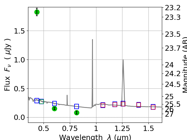 Best viewed in a wide browser window (1200 pixels or more). Download SED & P(z) plots to view larger versions.