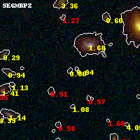 Object #142 x,y = (2268, 3491) RA, Dec = (01:37:26.064, -8:26:22.20) = (24.35860, -8.43950) BPZ = 0.802 [0.342--5.414] type = 7.80 (SB1_B10 - Scd_B10) chisq2 = 0.95 ODDS = 0.13 z_cluster = 0.566