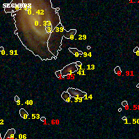 Object #159 x,y = (2171, 3463) RA, Dec = (01:37:26.448, -8:26:24.00) = (24.36020, -8.44000) BPZ = 1.412 [1.223--1.776] type = 7.70 (SB1_B10 - Scd_B10) chisq2 = 0.63 ODDS = 0.41 z_cluster = 0.566