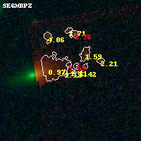 Object #164 x,y = (1376, 3455) RA, Dec = (01:37:29.664, -8:26:24.36) = (24.37360, -8.44010) BPZ = 1.209 [0.743--6.606] type = 6.00 (Sbc_B10) chisq2 = 0.21 ODDS = 0.15 z_cluster = 0.566