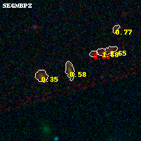 Object #1900 x,y = (2696, 1205) RA, Dec = (01:37:24.312, -8:28:39.36) = (24.35130, -8.47760) BPZ = 0.576 [0.426--0.679] type = 8.00 (SB1_B10) chisq2 = 0.27 ODDS = 0.61 z_cluster = 0.566