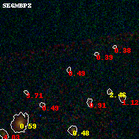 Object #4 x,y = (3167, 3809) RA, Dec = (01:37:22.416, -8:26:03.12) = (24.34340, -8.43420) BPZ = 0.489 [0.266--4.479] type = 7.60 (SB1_B10 - Scd_B10) chisq2 = 1.79 ODDS = 0.09 z_cluster = 0.566