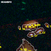 Object #42 x,y = (2113, 3646) RA, Dec = (01:37:26.688, -8:26:12.84) = (24.36120, -8.43690) BPZ = 0.806 [0.632--0.930] type = 7.50 (SB1_B10 - Scd_B10) chisq2 = 0.30 ODDS = 0.65 z_cluster = 0.566